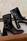 В нее вошли балетки, туфли и лоферы с квадратным мысом, сапоги на тракторной подошве, устойчивом каблуке и kitten heels, ботильоны из лакированной и матовой кожи, ботинки челси и мюли. Многие модели украсили золотые цепочки.